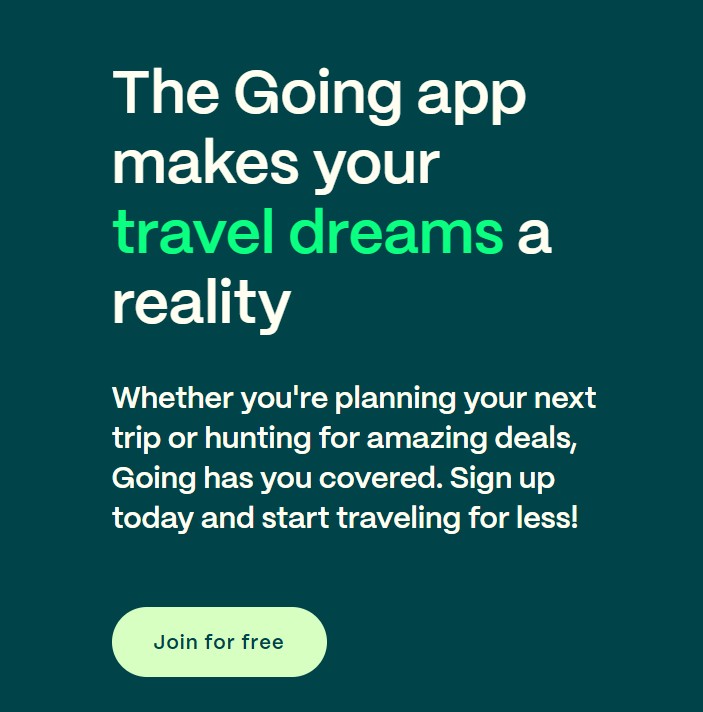 Ultimately, Going transforms travel from a luxury into a possibility. It democratizes access to the world, making it easier for people from different backgrounds to explore and connect. By combining technology, strategy, and a focus on value, it creates a system that benefits both seasoned travelers and newcomers alike.